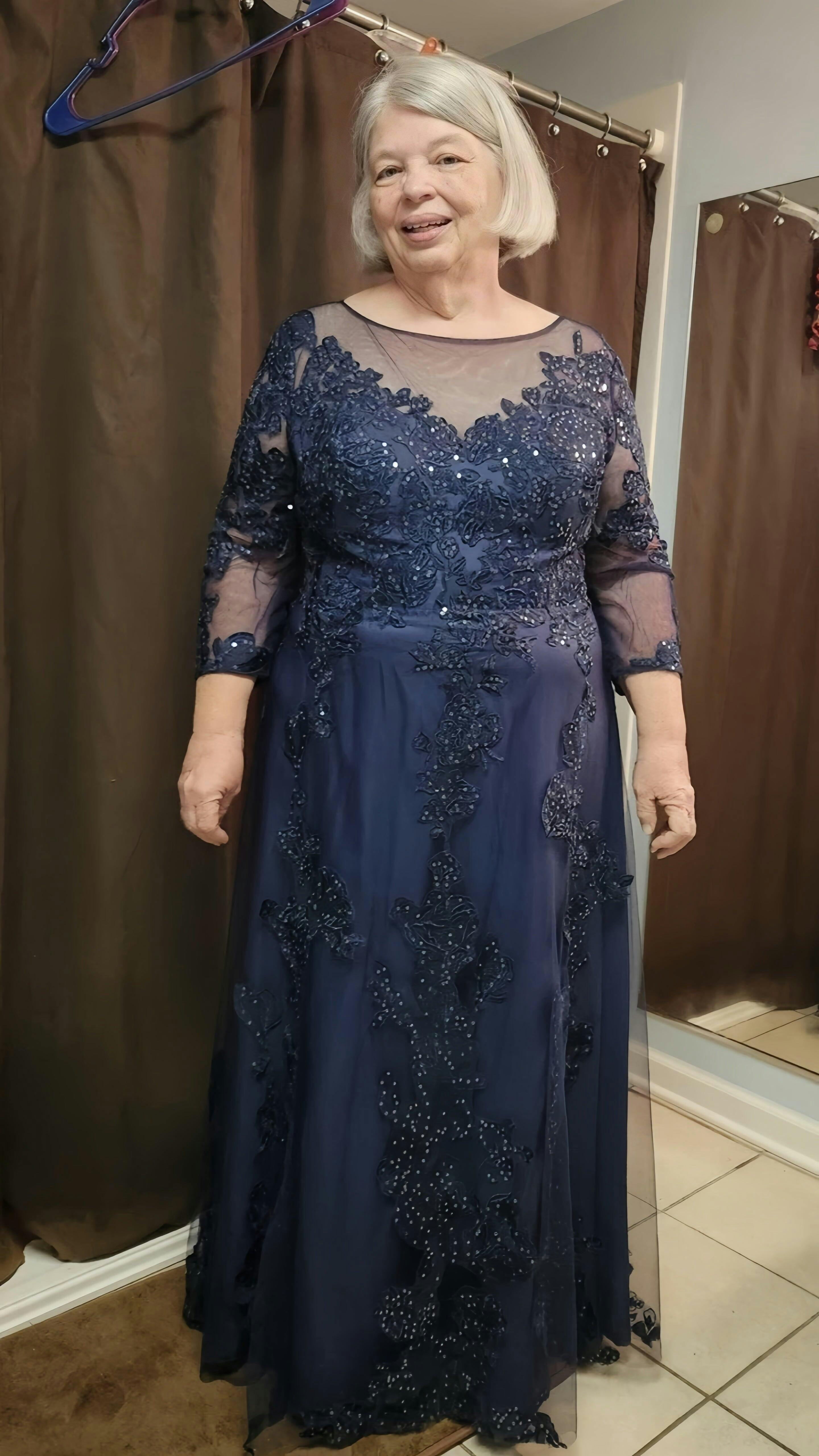 A-Line/Princess Scoop Neck 3/4 Length Sleeves Floor-Length Plus Size Mother of the Bride Dresses with Sequins & Appliques
