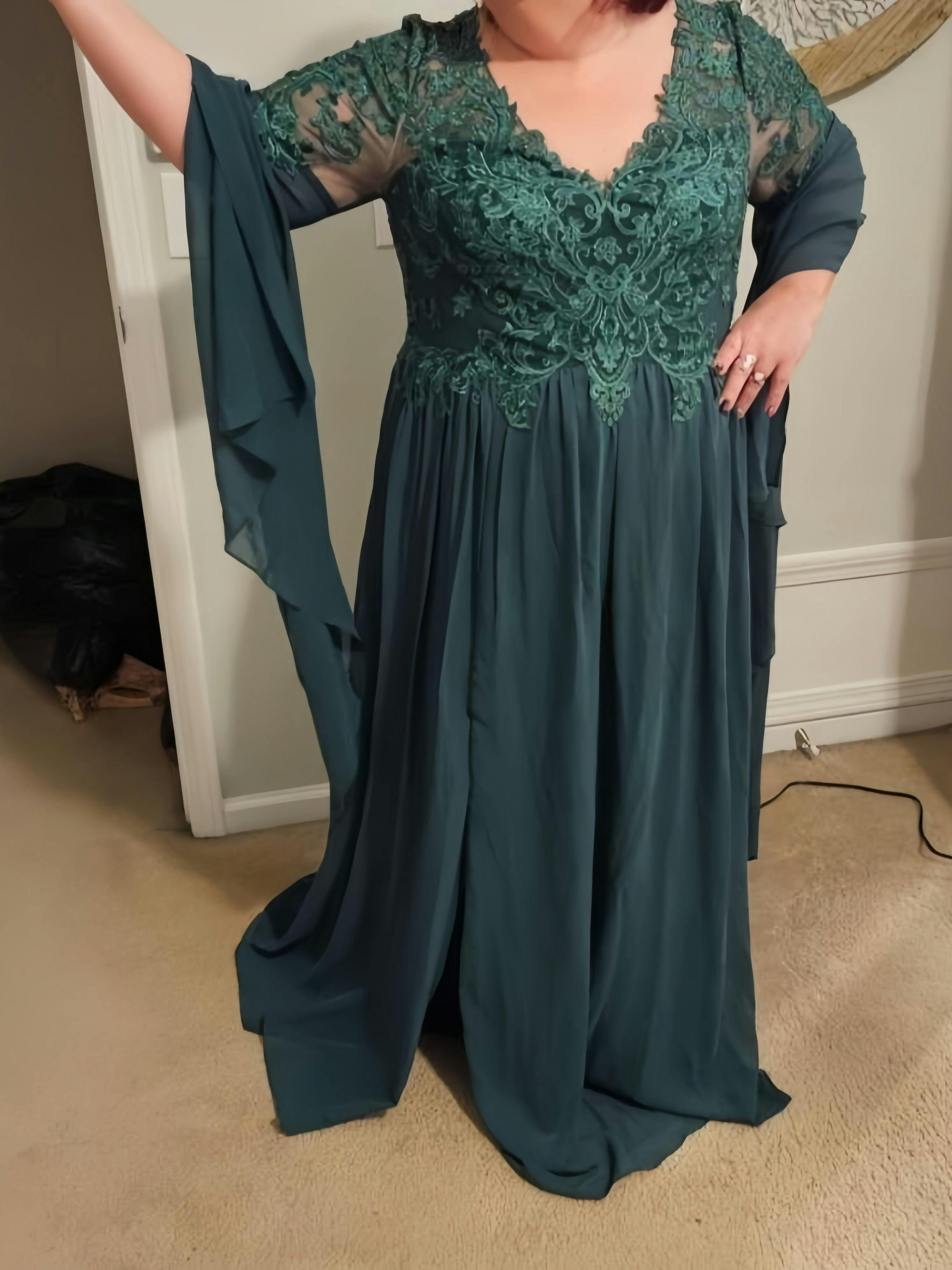 A-Line/Princess V-Neck Half Flutter Sleeves Floor-Length Mother of the Bride Dresses with Split Side & Appliques