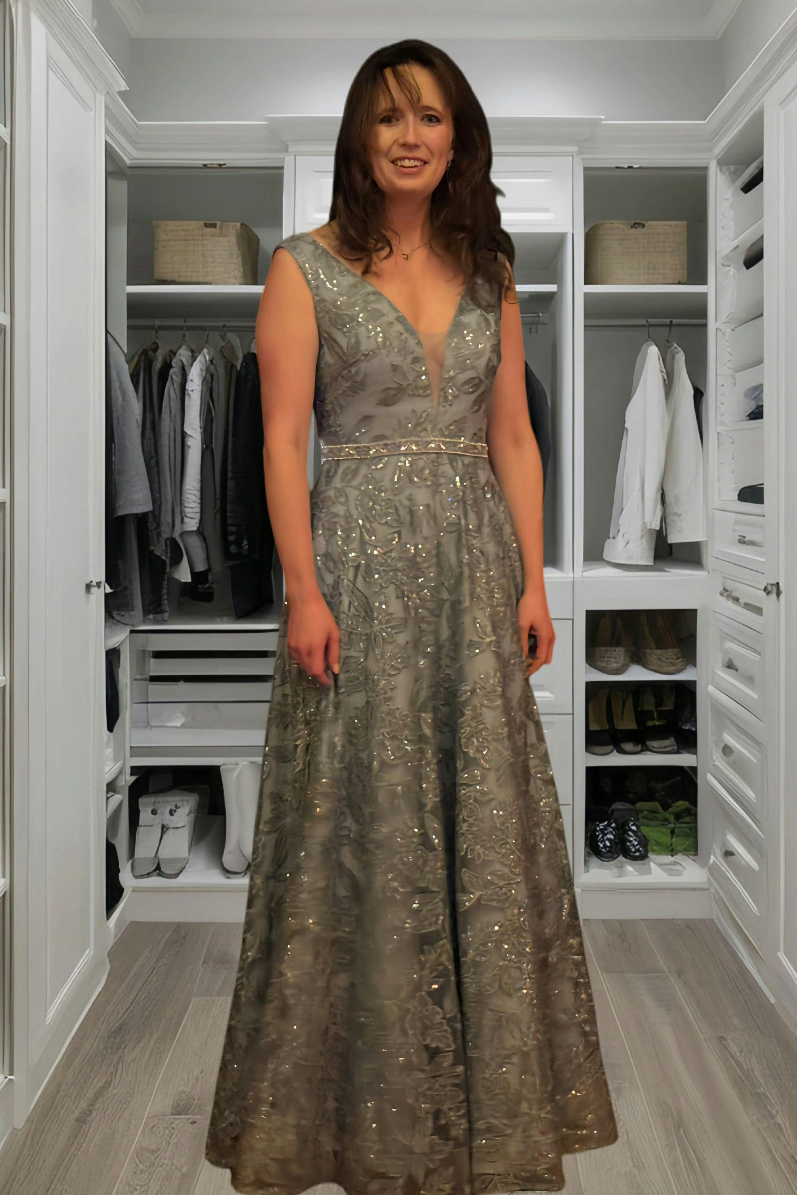 A-Line/Princess V-Neck Sleeveless Floor-Length Mother of the Bride Dresses with Beaded & Sequins