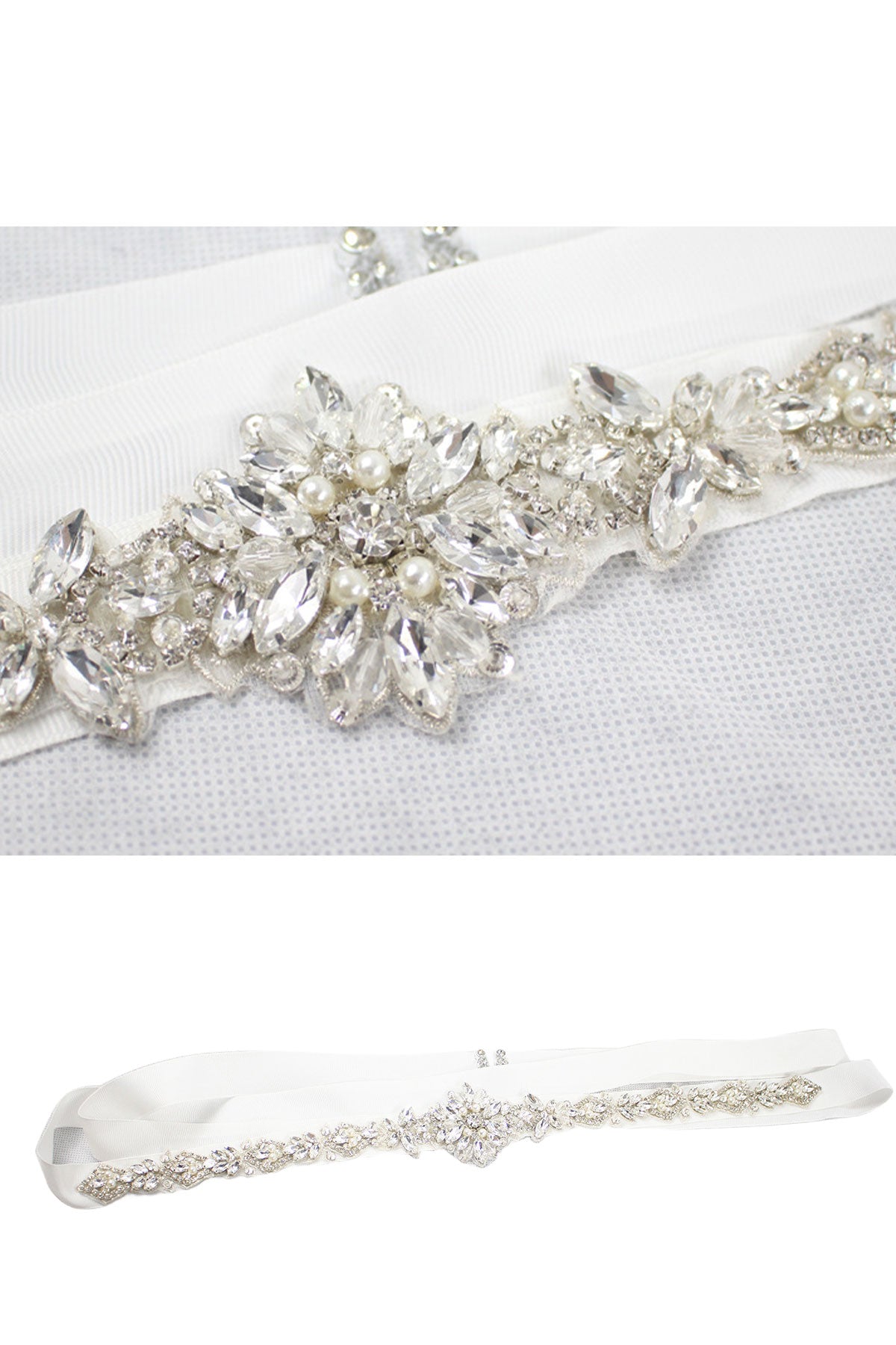 Delicate flower shape imitation pearl rhinestone bridal waist ribbon