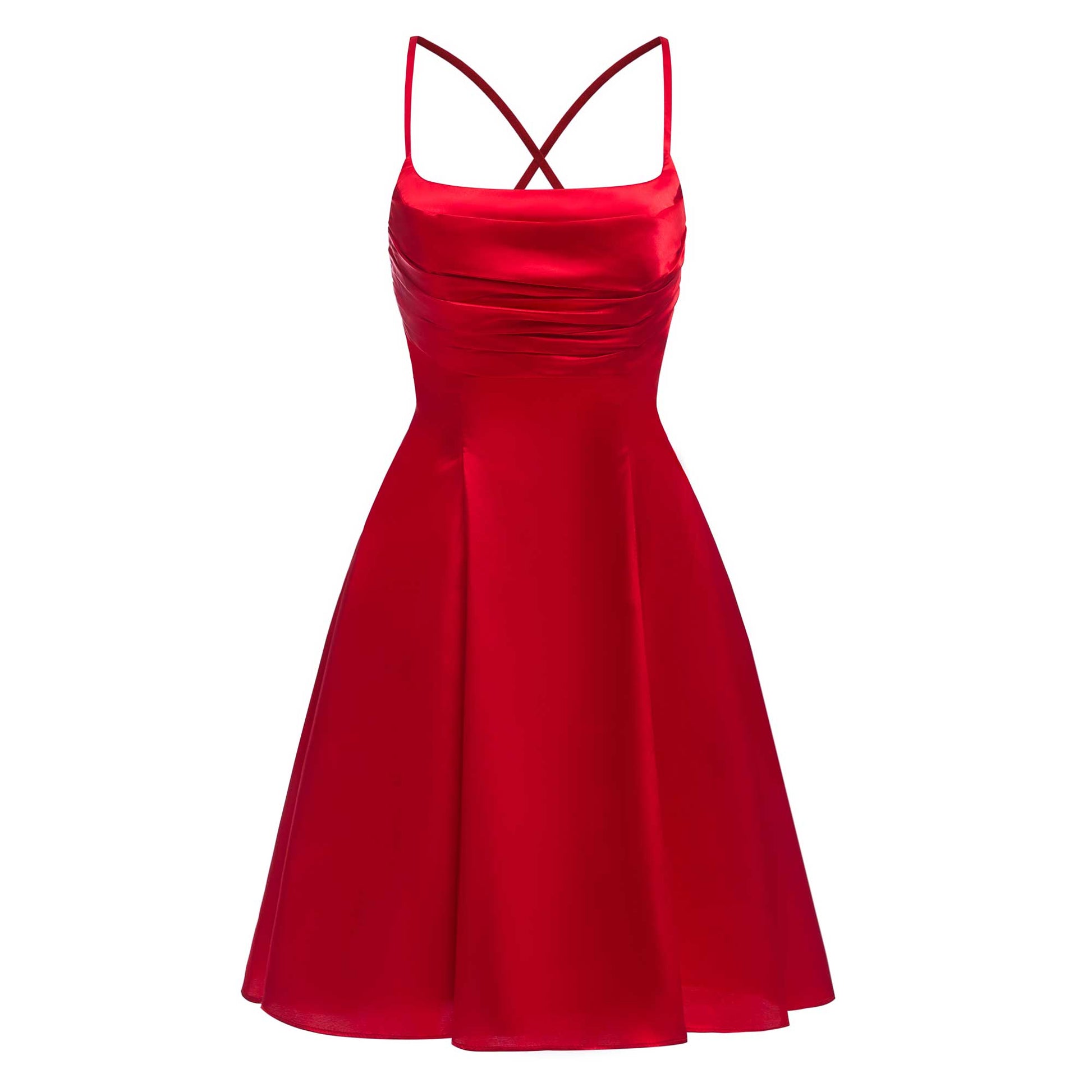 A-Line Sleeveless Ruched Satin Mini Homecoming Dresses