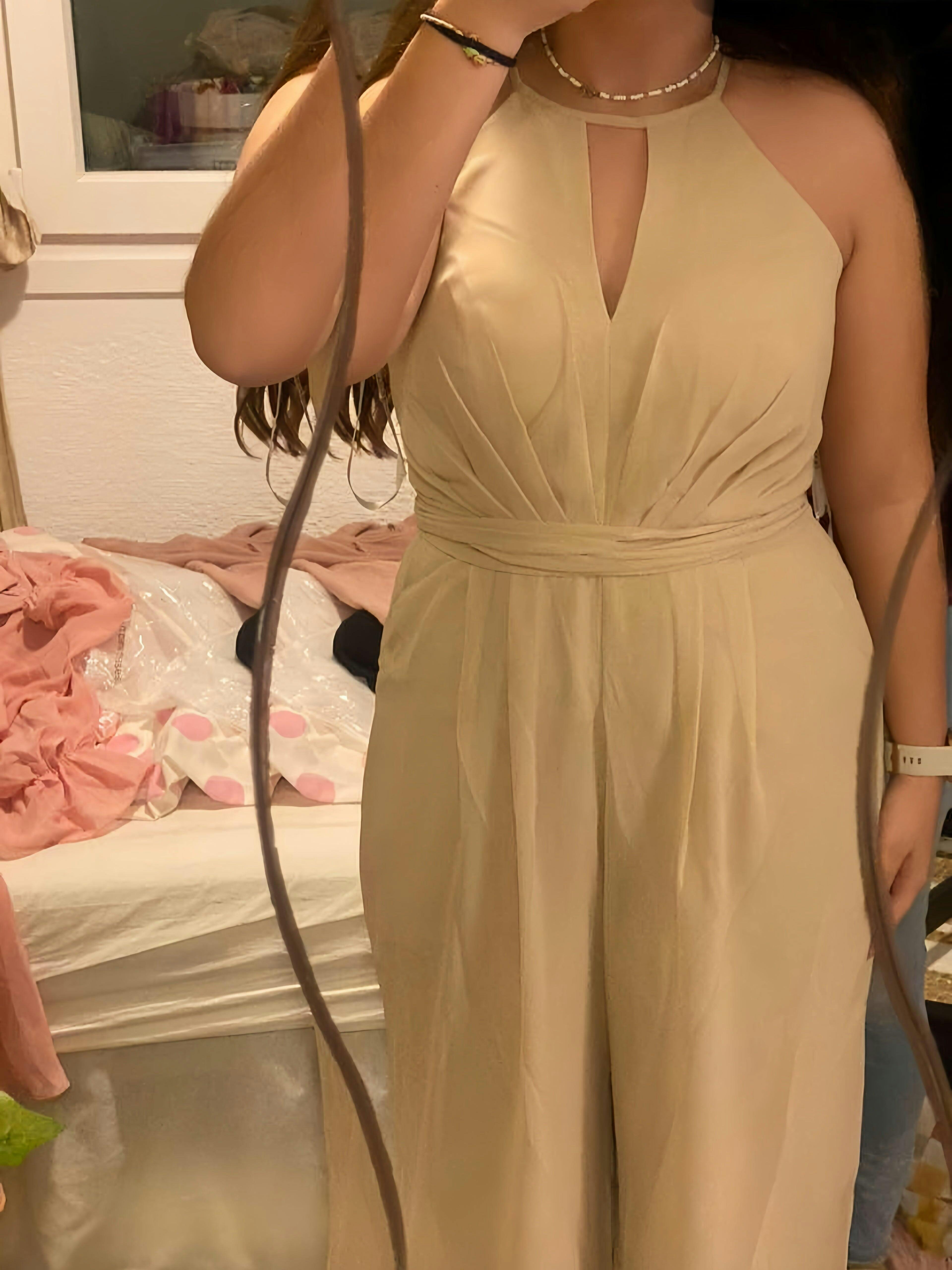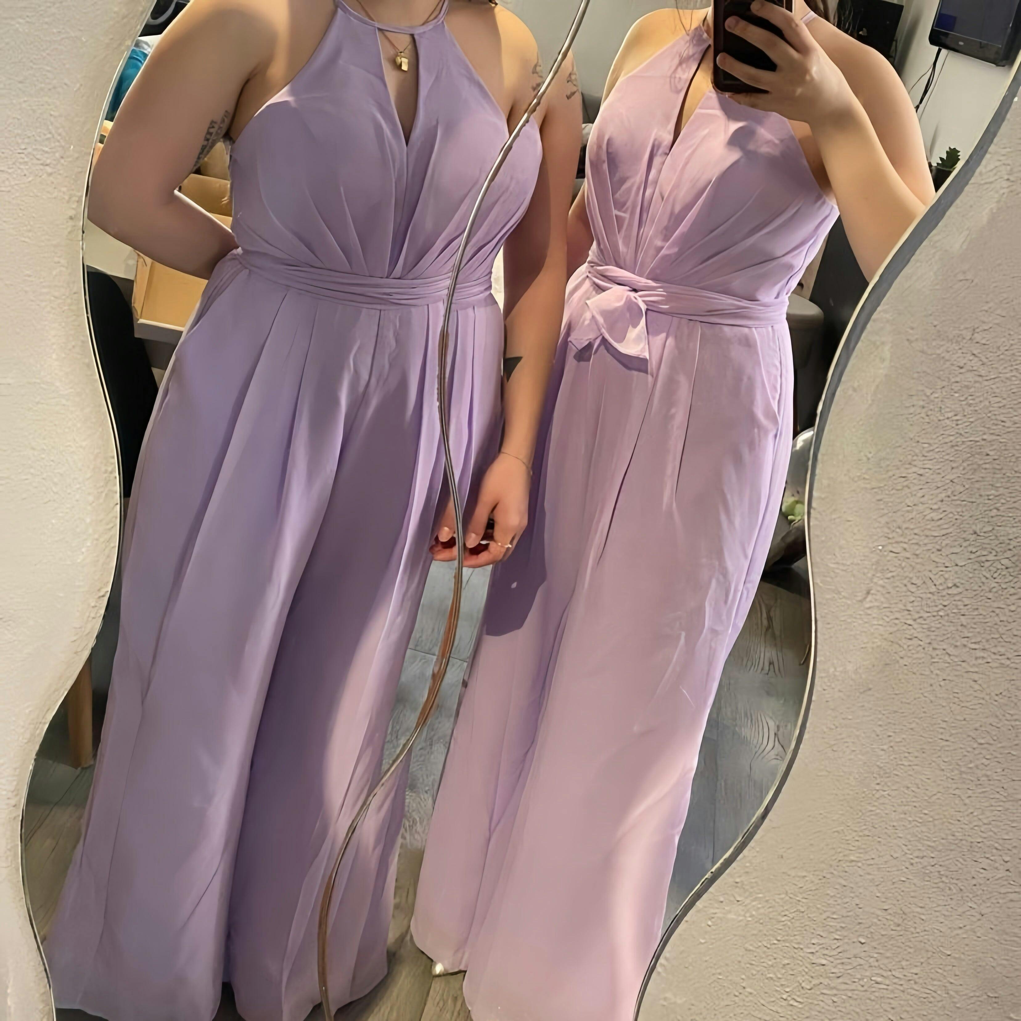 Jumpsuits Halter Neckline Sleeveless Floor-Length Plus Size Bridesmaid Dresses with Ruched,Pockets & Bowknot