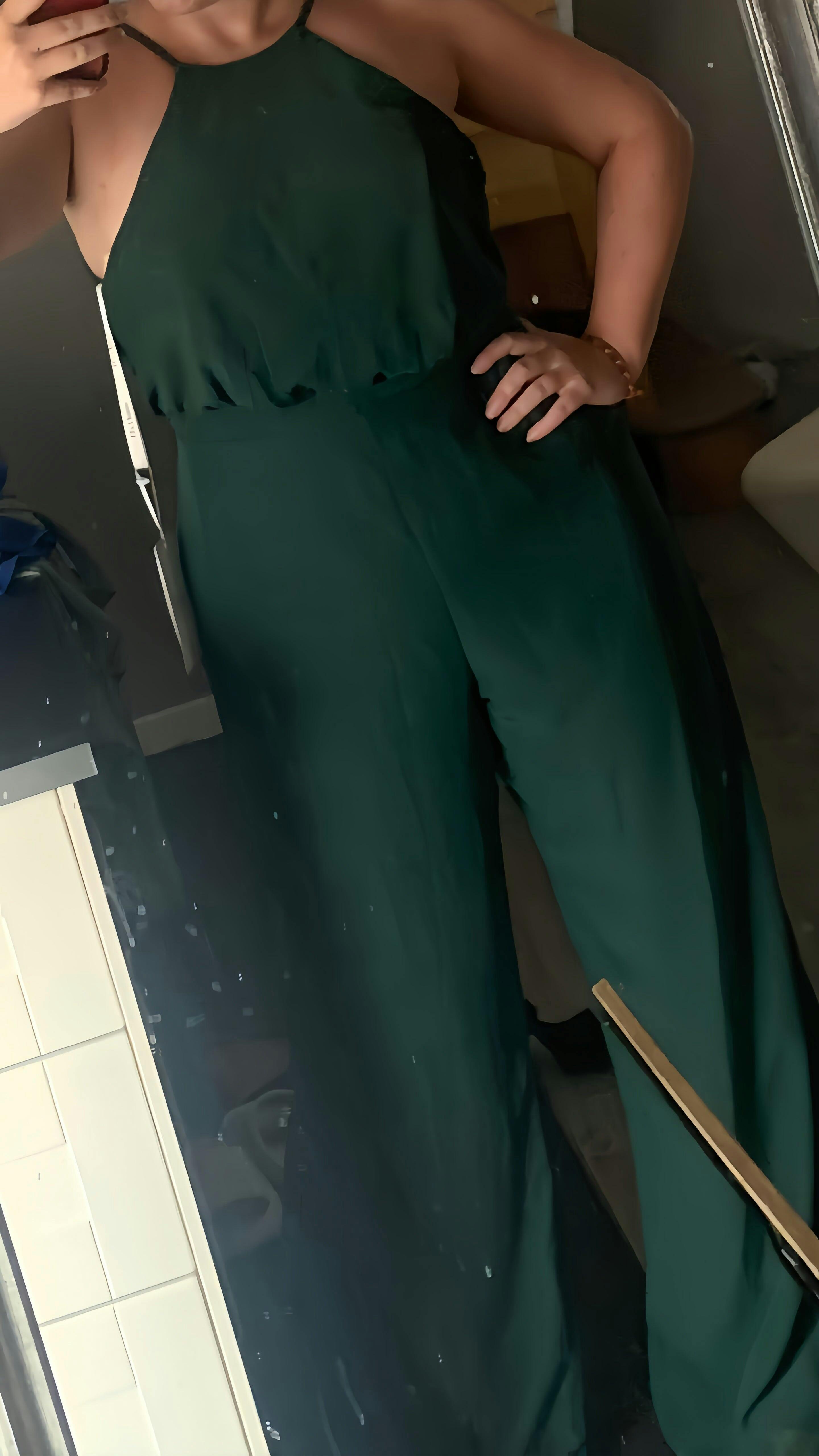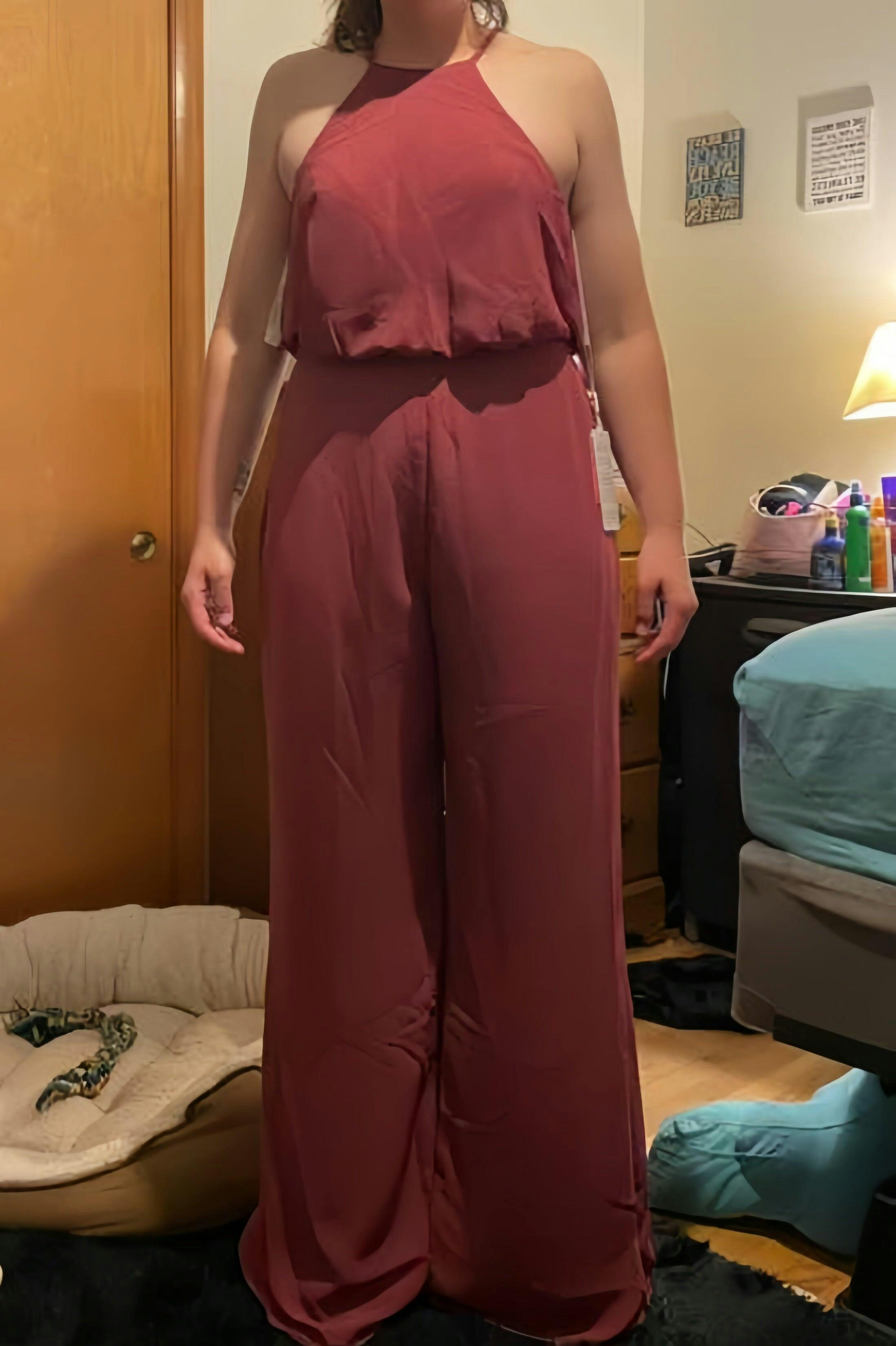 Jumpsuits Halter Sleeveless Floor-Length Plus Size Bridesmaid Dresses with Ruched & Pockets