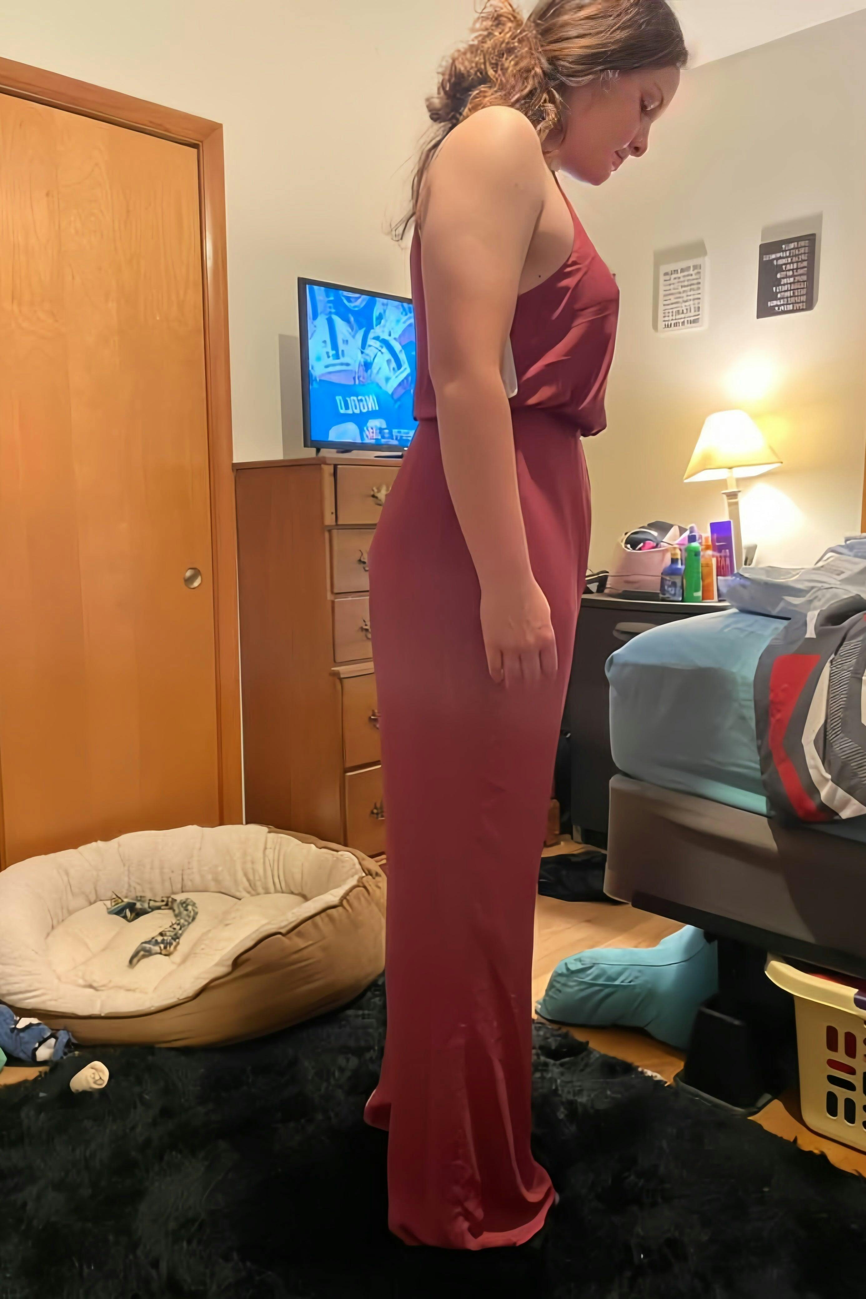 • The model is 5'7" (170cm), 160 lbs with measurements: (Bust 97cm, Waist 79cm, Hips 105cm, Hollow to hem 152cm). She is wearing a US 12 dress.
