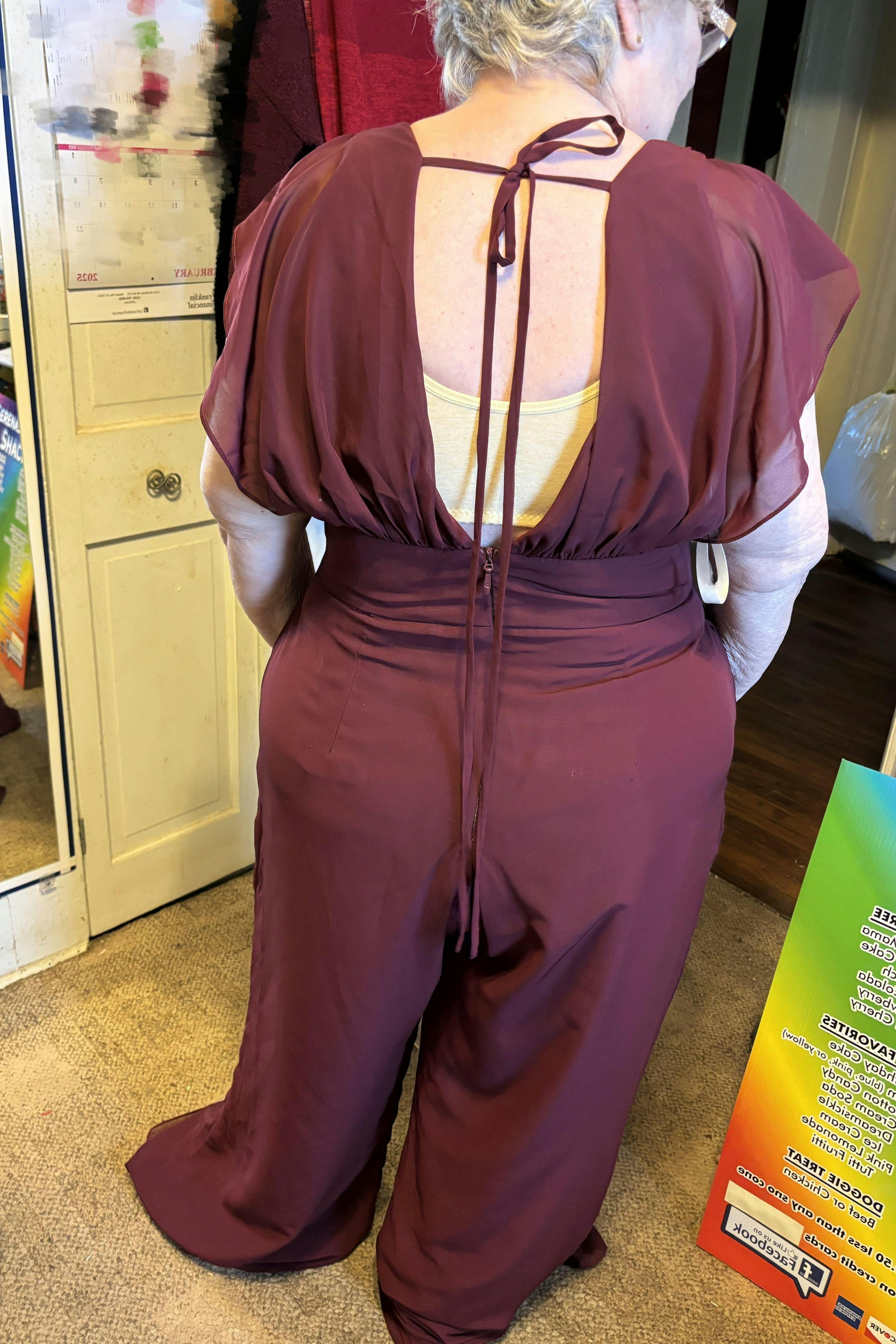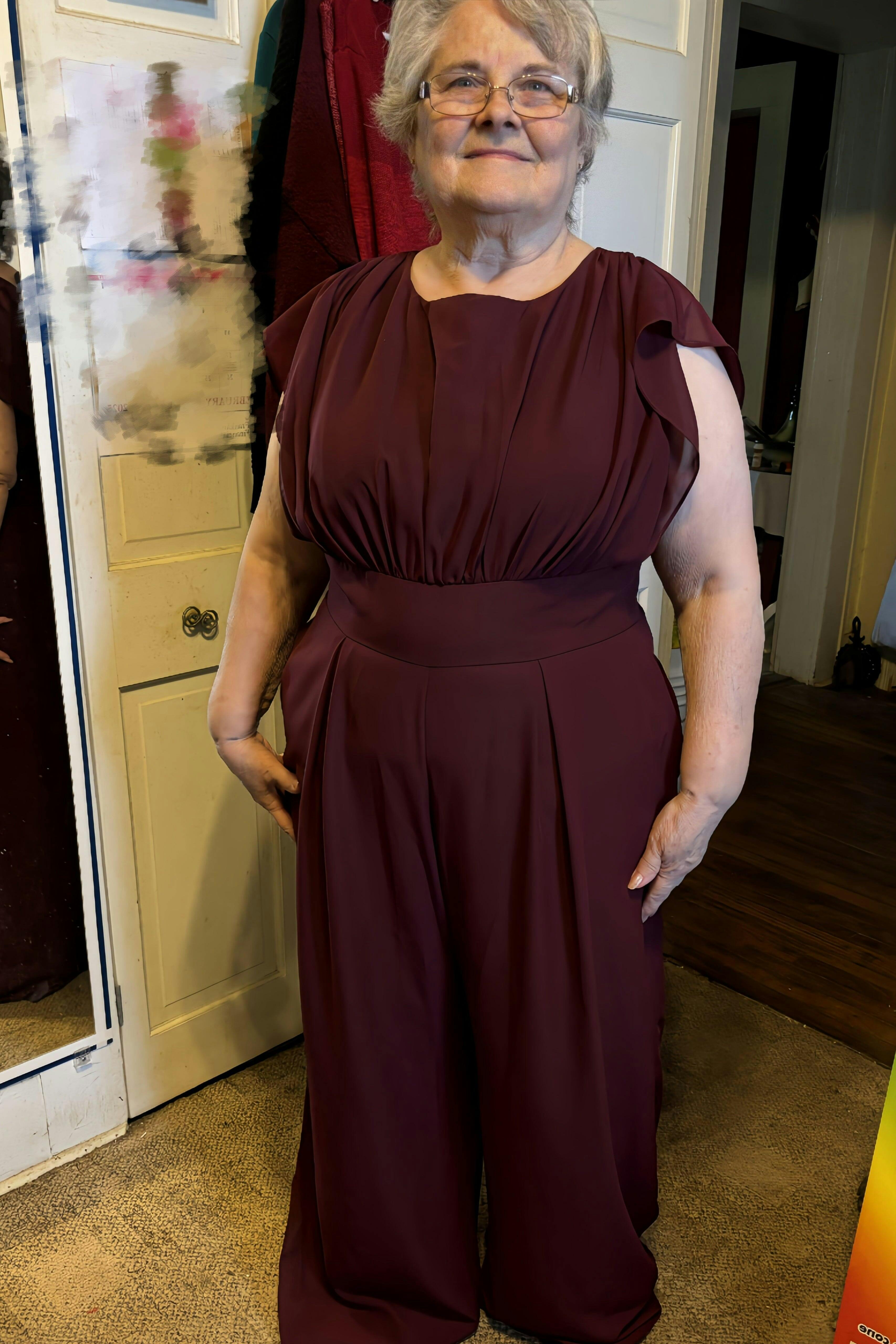 Jumpsuits Scoop Neck Short Sleeves Floor-Length Plus Size Bridesmaid Dresses with Ruched & Pockets