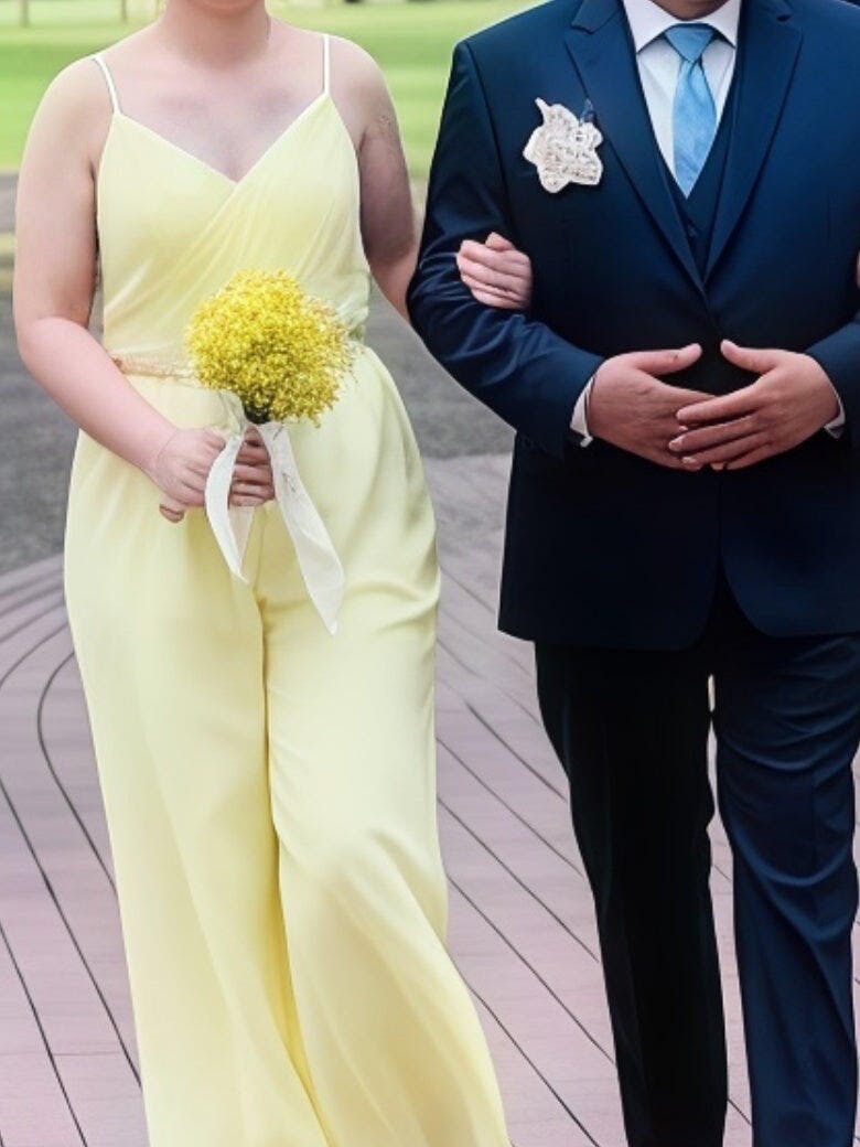 Jumpsuits Spaghetti Straps V-Neck Sleeveless Floor-Length Chiffon Bridesmaid Dresses with Ruched