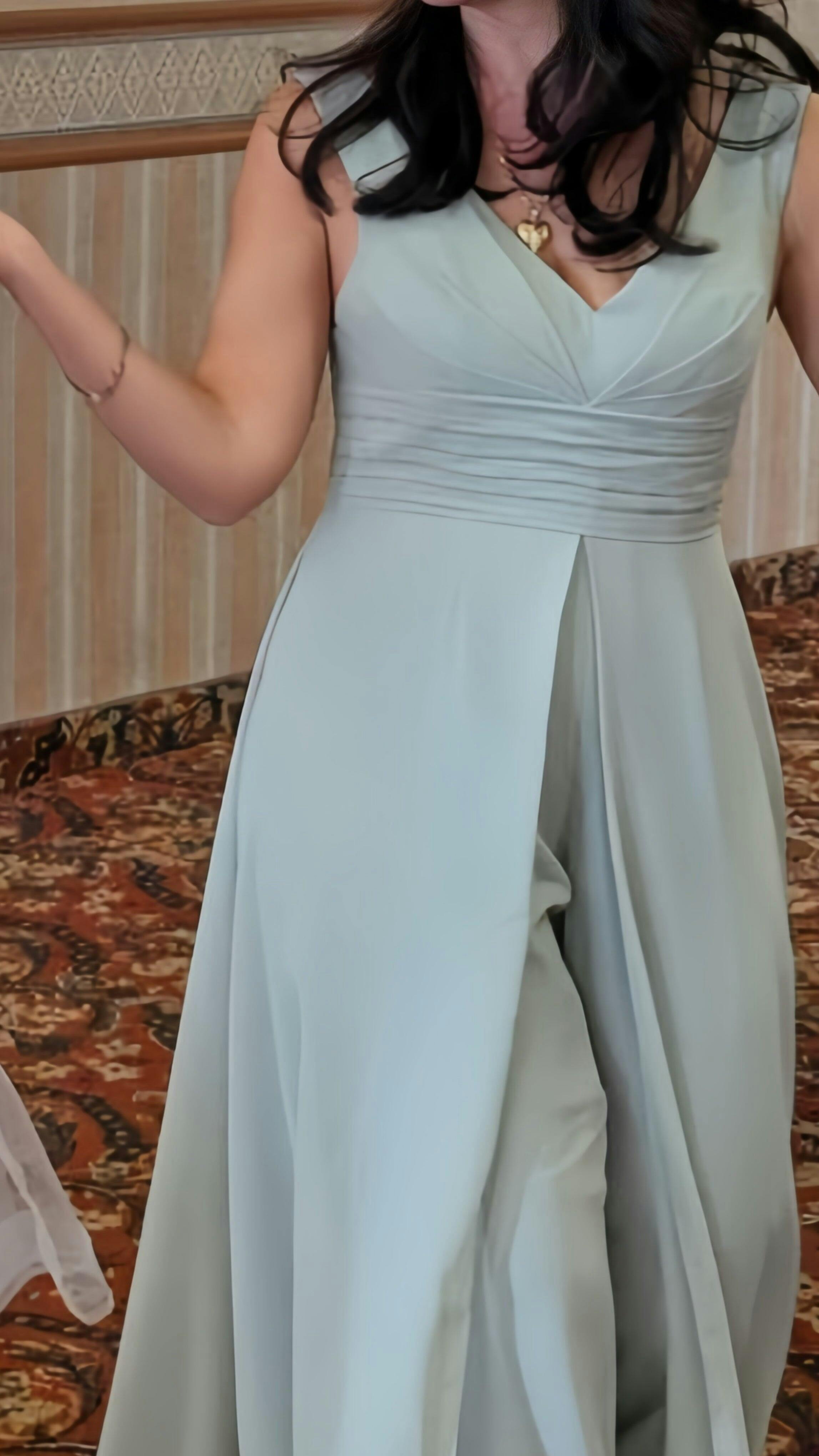 Jumpsuits V-Neck Sleeveless Floor-Length Bridesmaid Dresses with Ruched