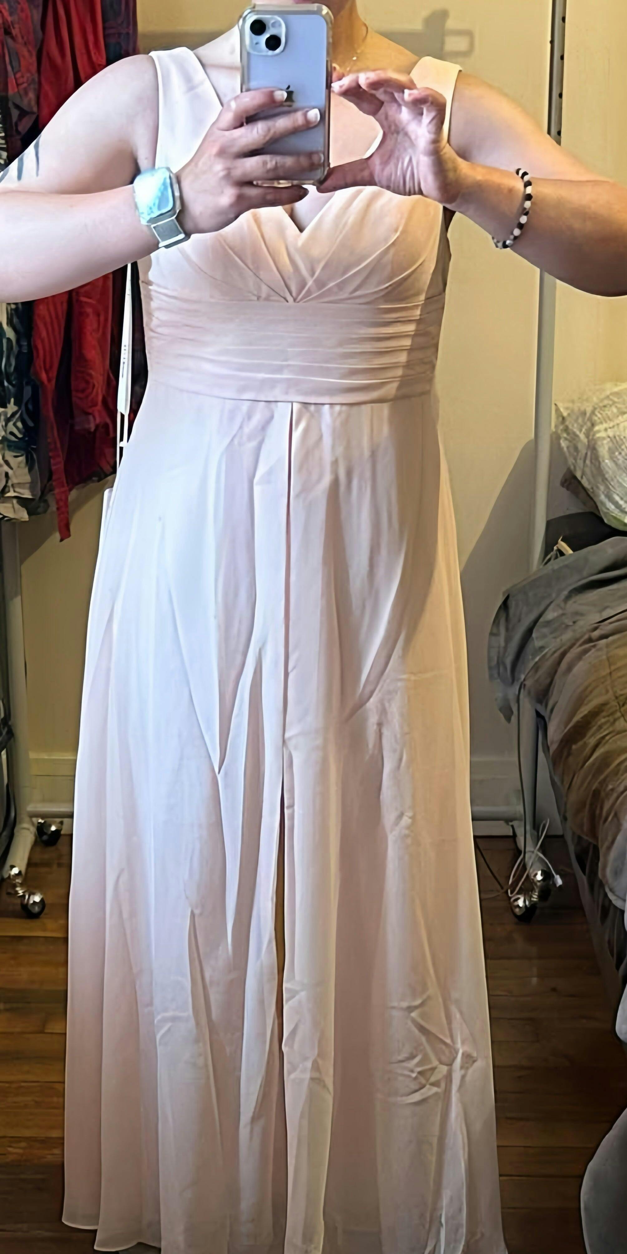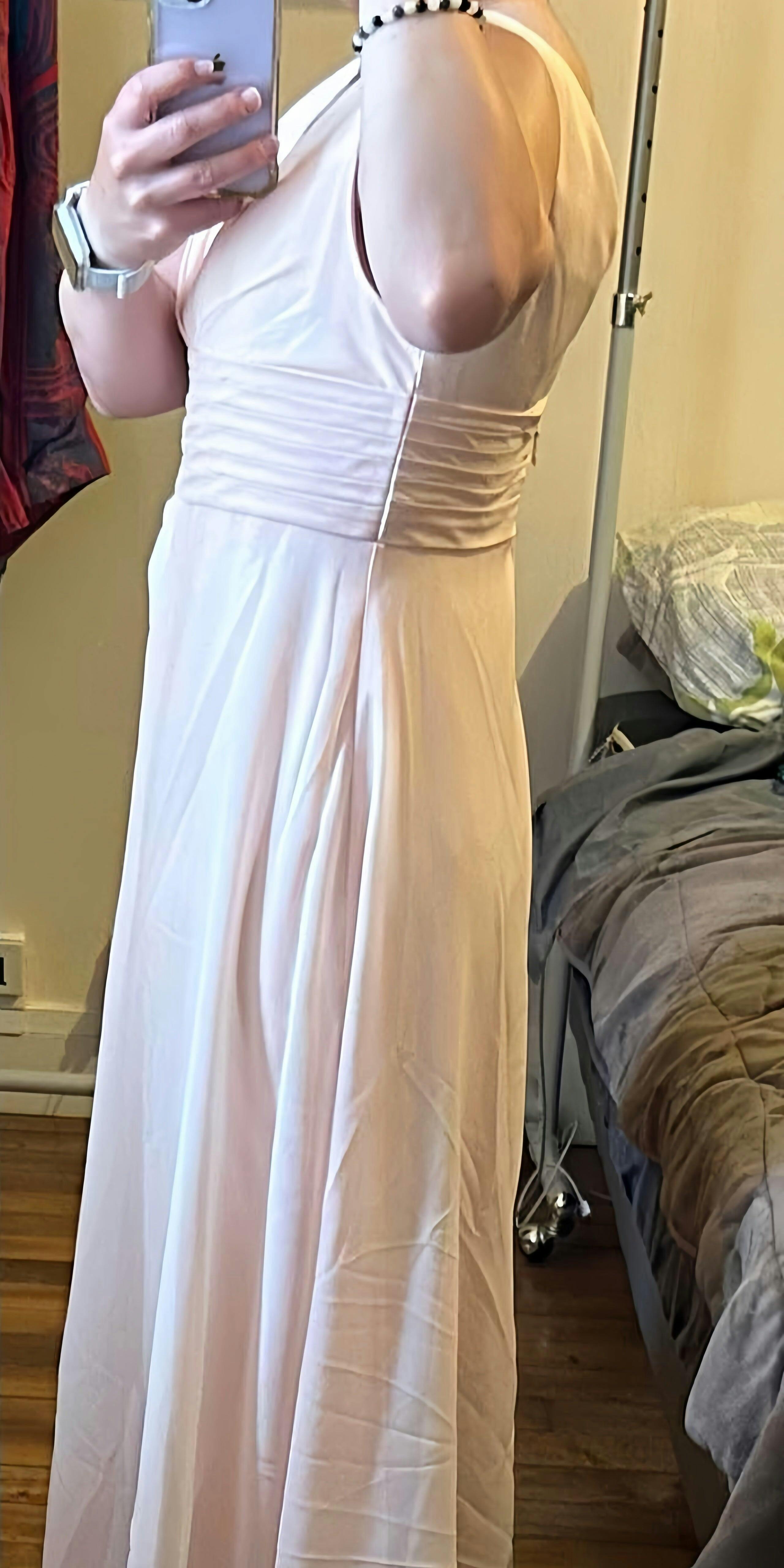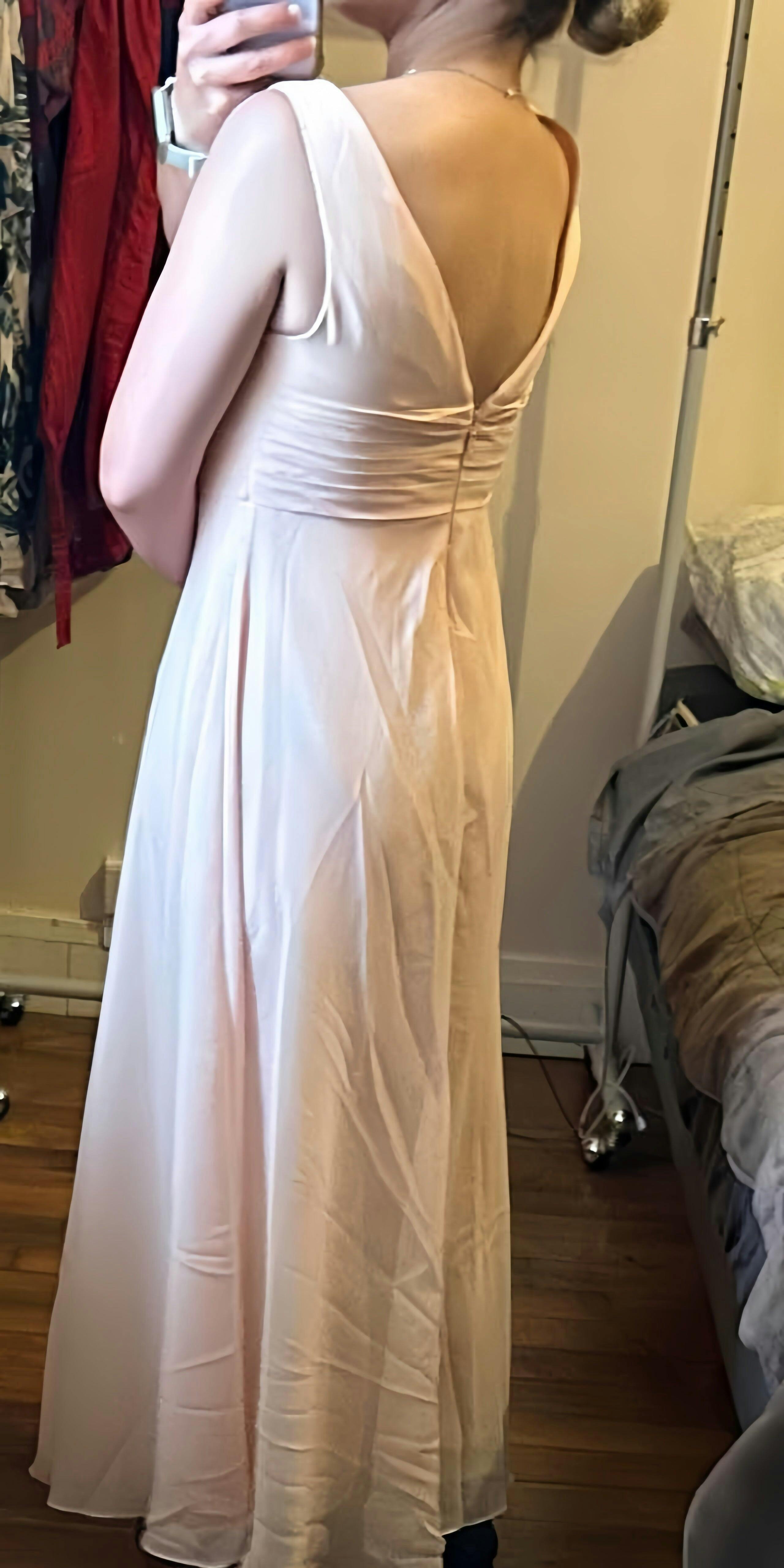 • The model is 5'7" (170cm), 114 lbs with measurements: (Bust 83cm, Waist 65cm, Hips 91cm, Hollow to hem 148cm). She is wearing a US 2 dress.