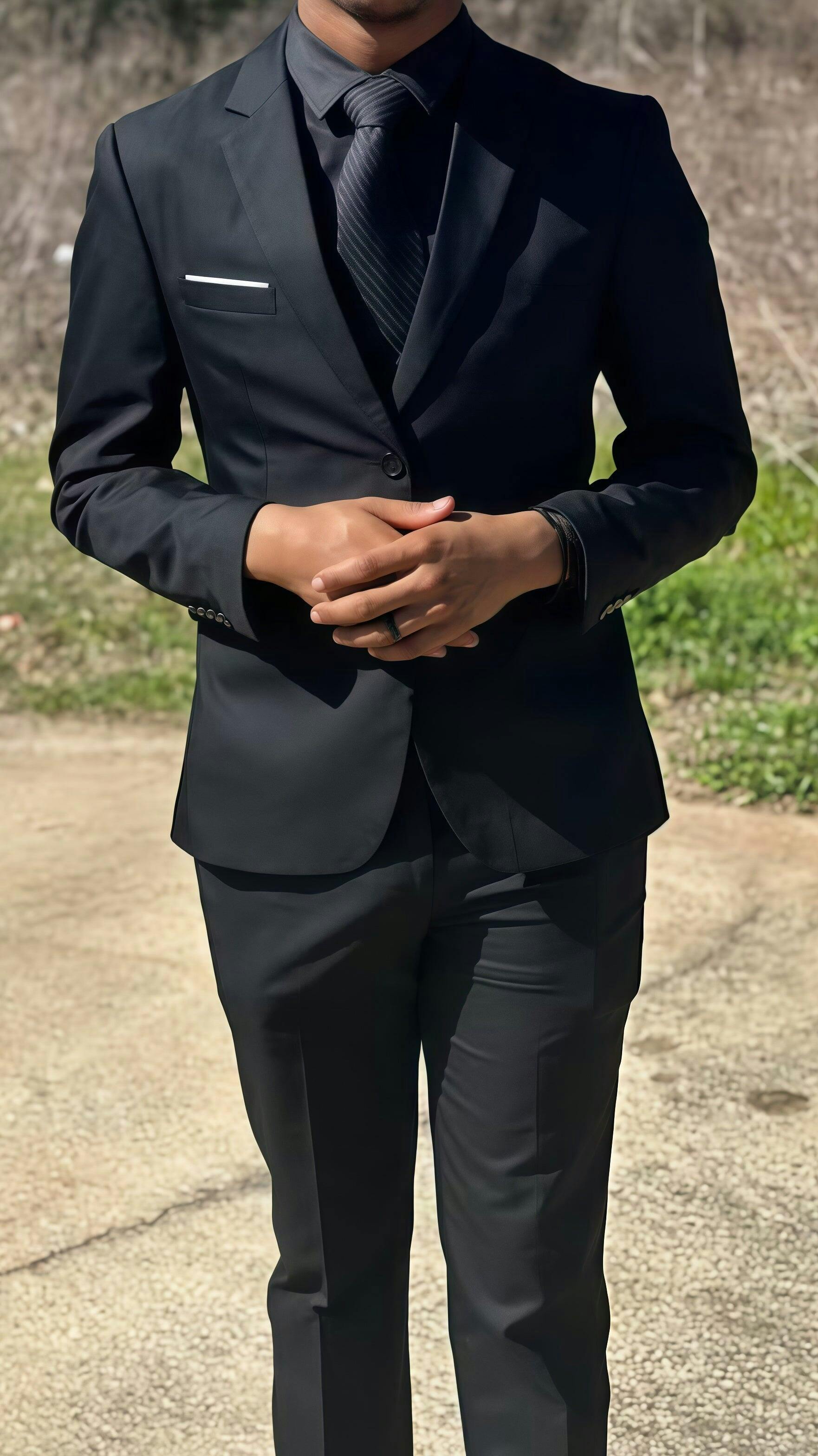 This 2-piece slim fit suit is perfect for cocktail parties. The two-button blazer fits perfectly and gives a professional look. Truly worth it!
