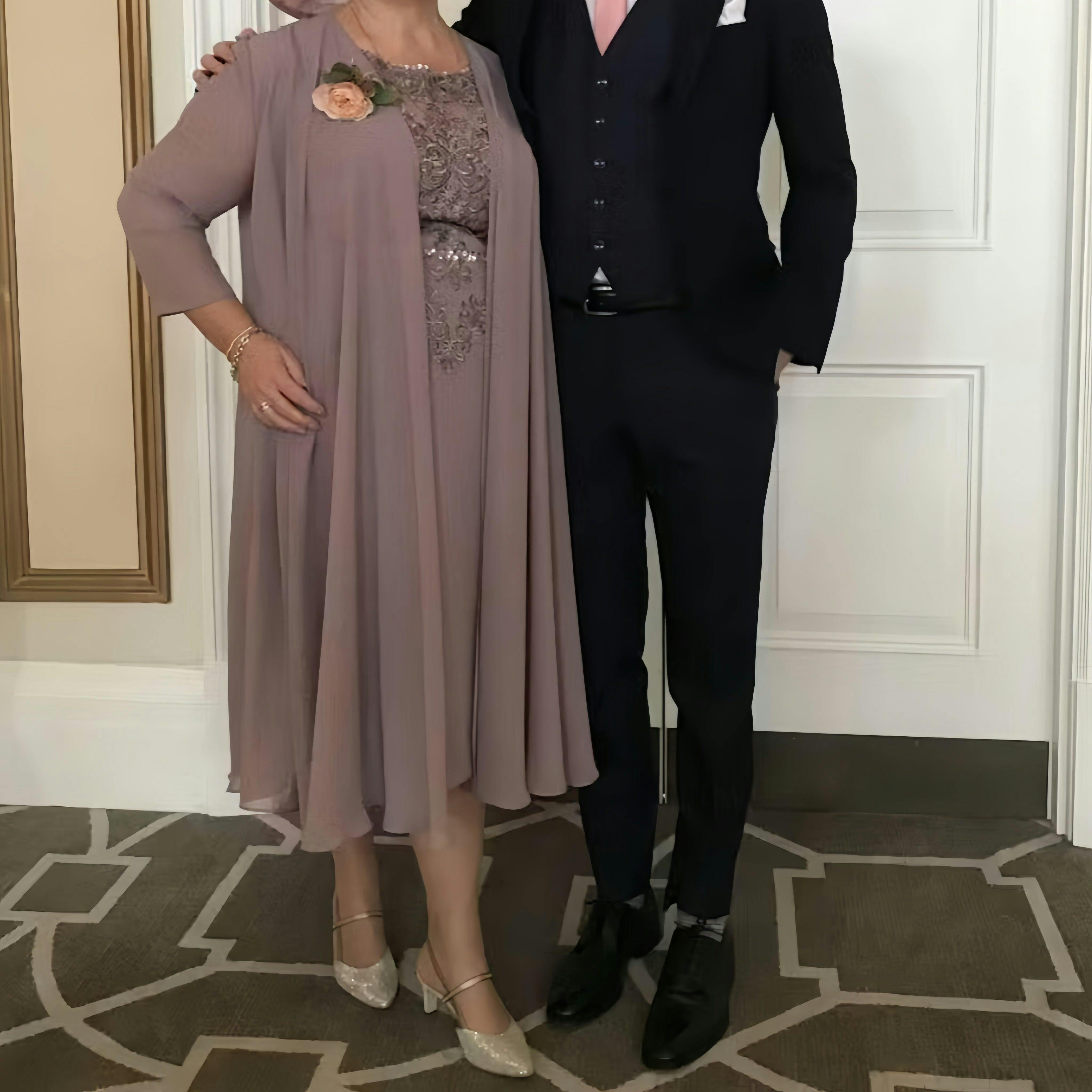 Refined Scoop Neck Two Pieces Lace Chiffon Knee Length Mother Of The Bride Dresses