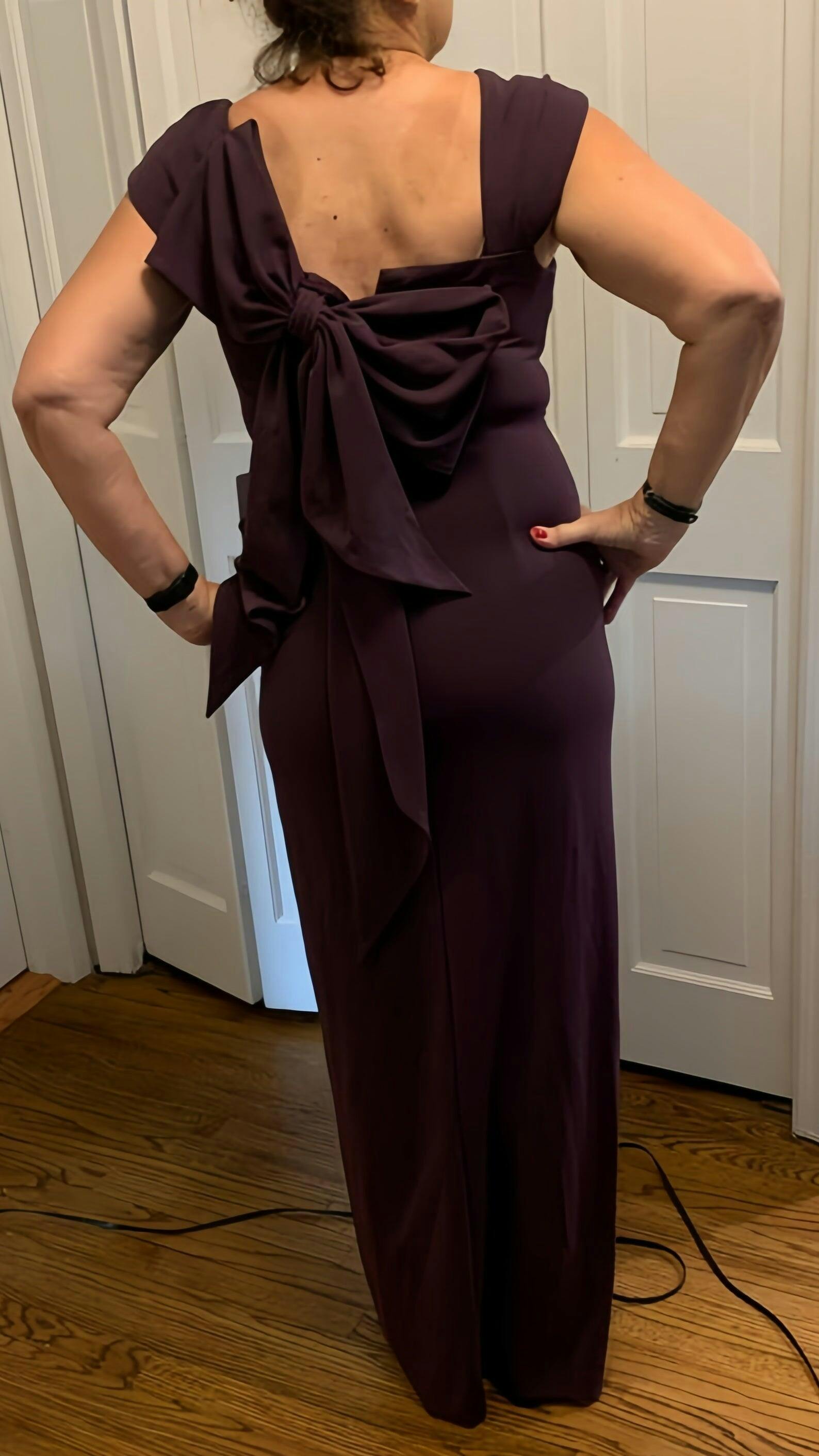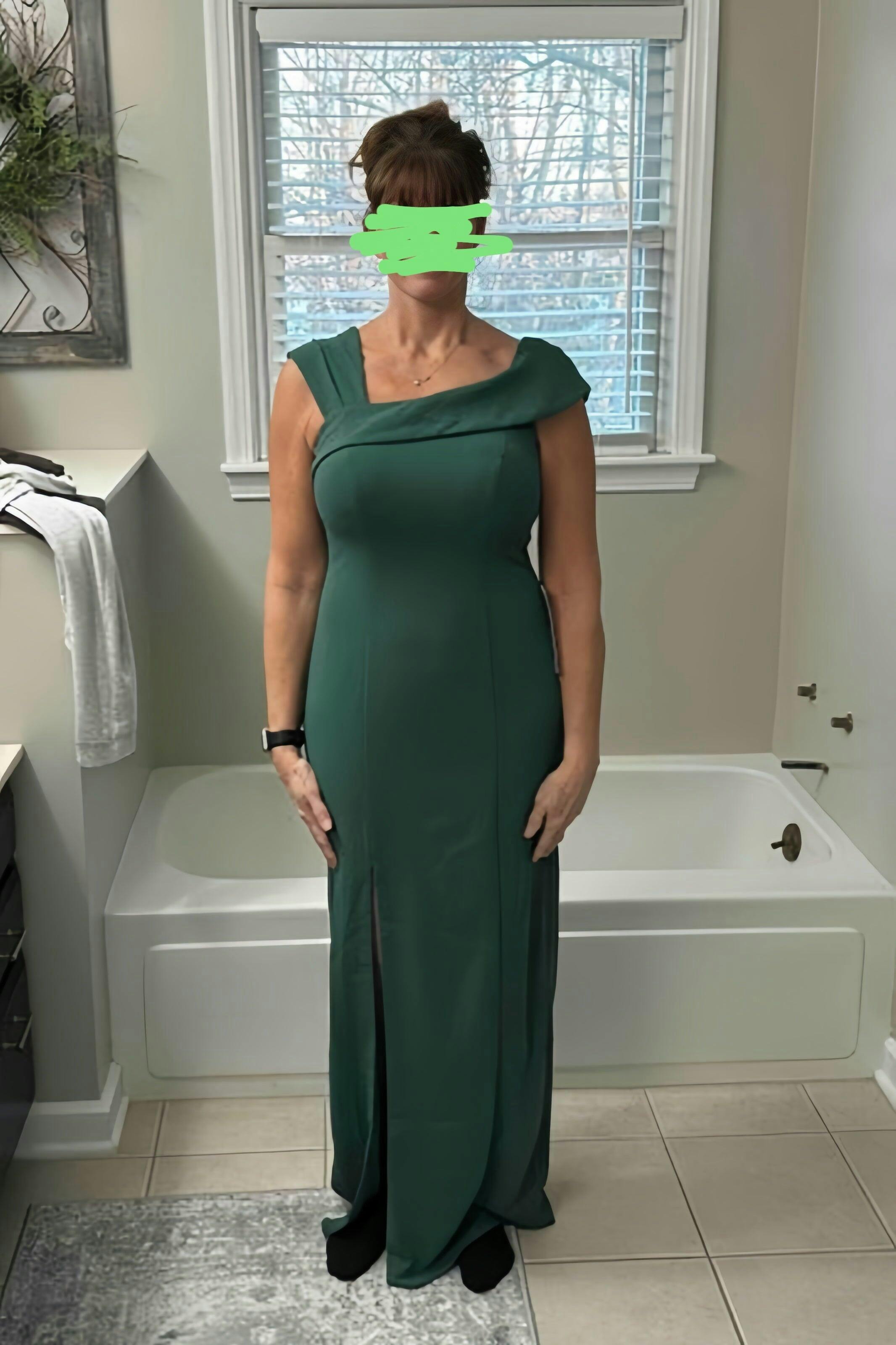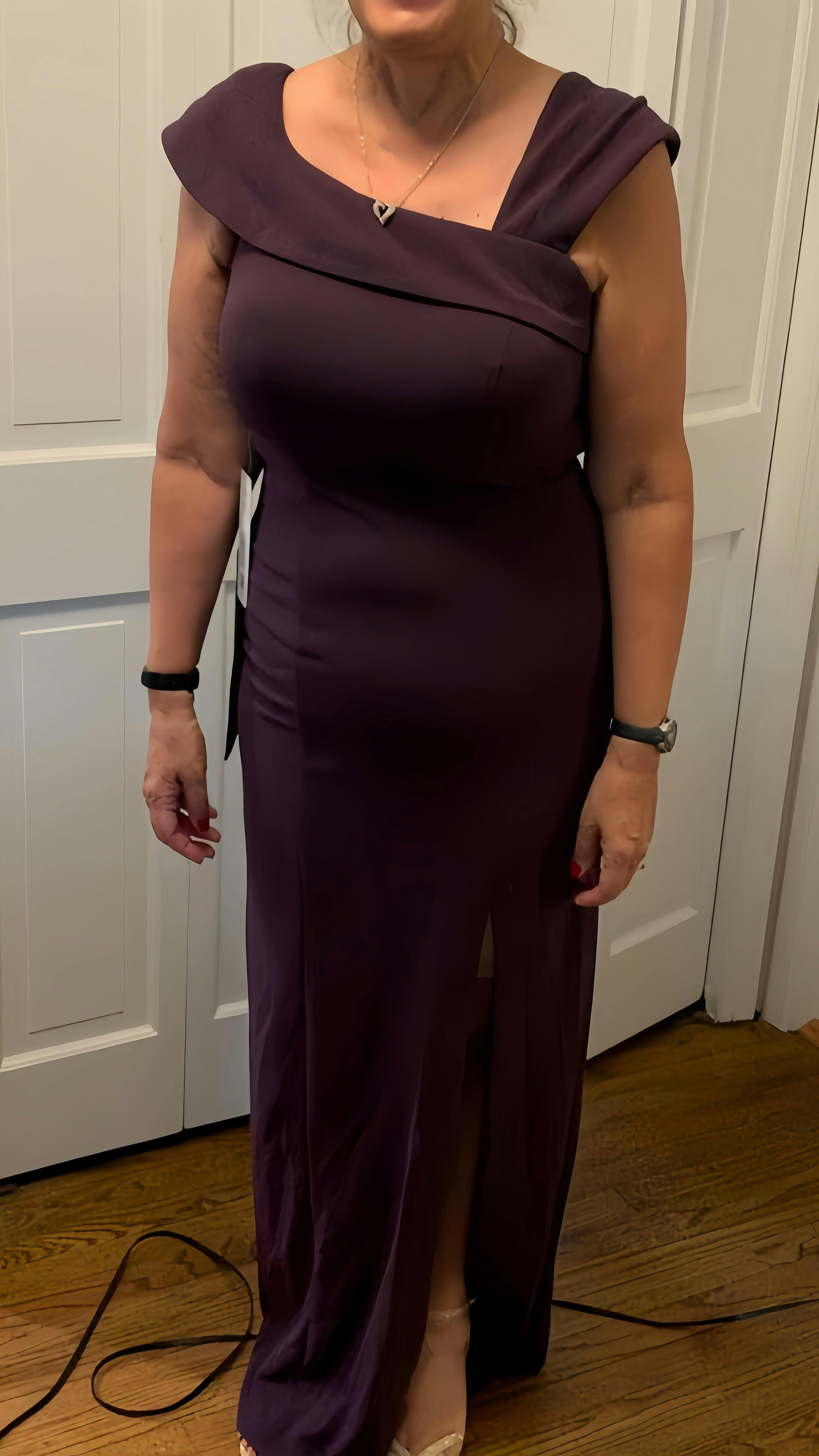 • The model is 5'7" (170cm), 160 lbs with measurements: (Bust 97cm, Waist 79cm, Hips 105cm, Hollow to hem 152cm). She is wearing a US 12 dress.
