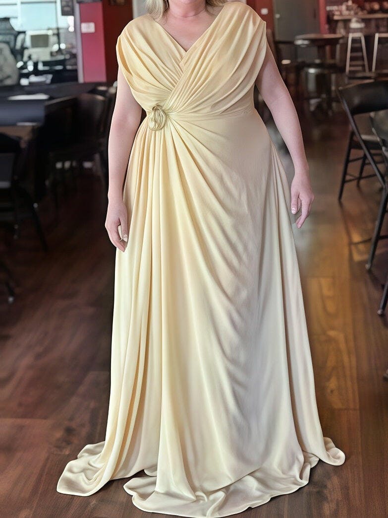 Sheath/Column V-Neck Sleeveless Floor-Length Mother of the Bride Dresses with Ruffles & Appliques