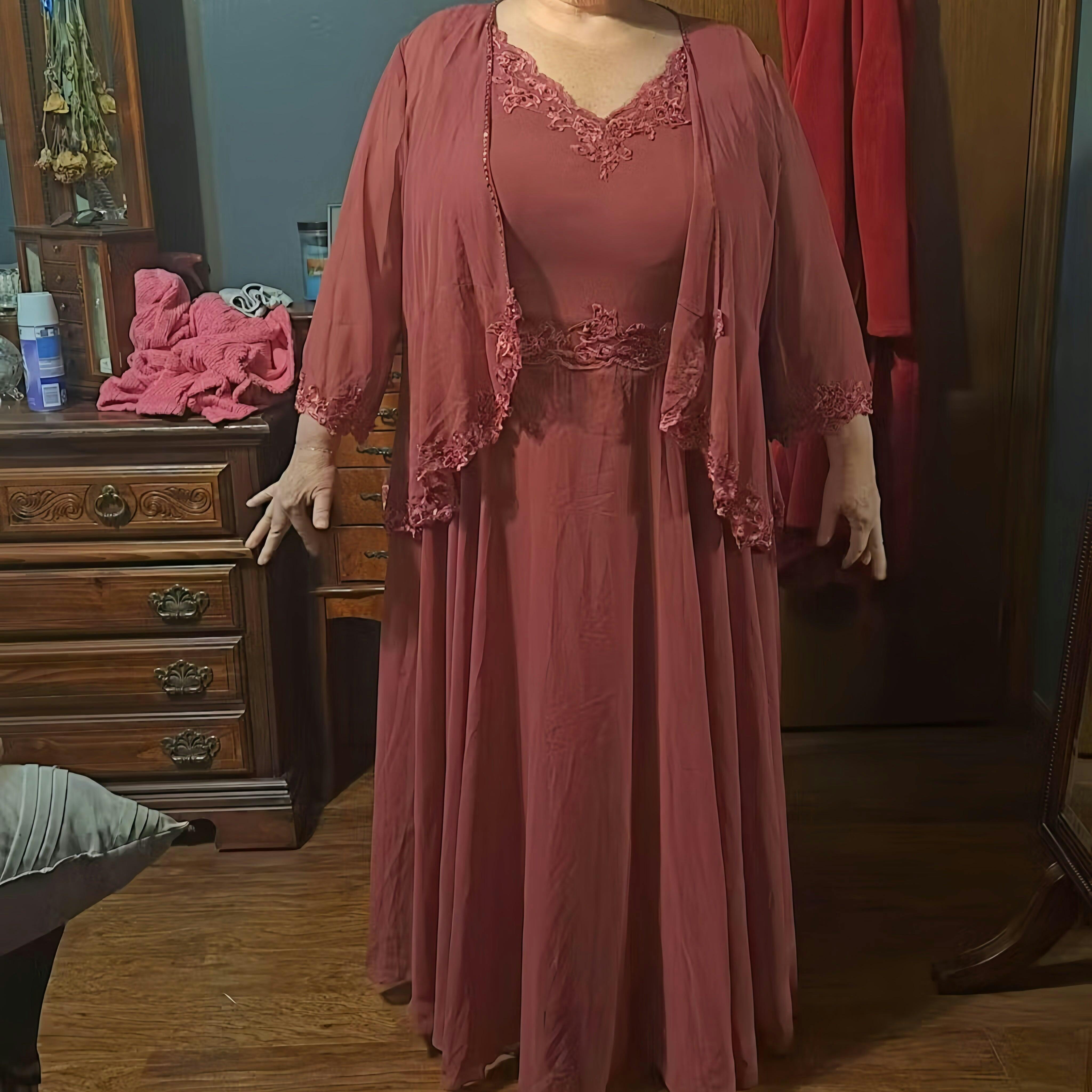 Sophisticated V-Neck Two Pieces Chiffon Long Mother Of The Bride Dresses