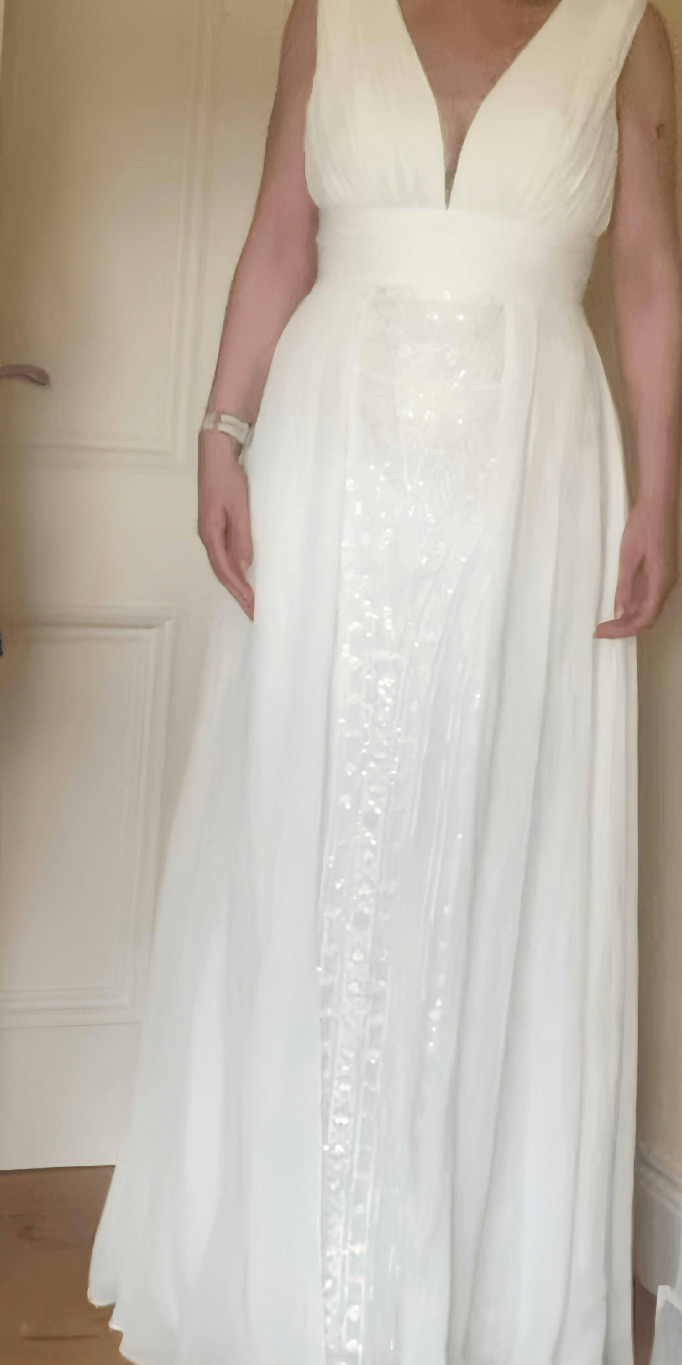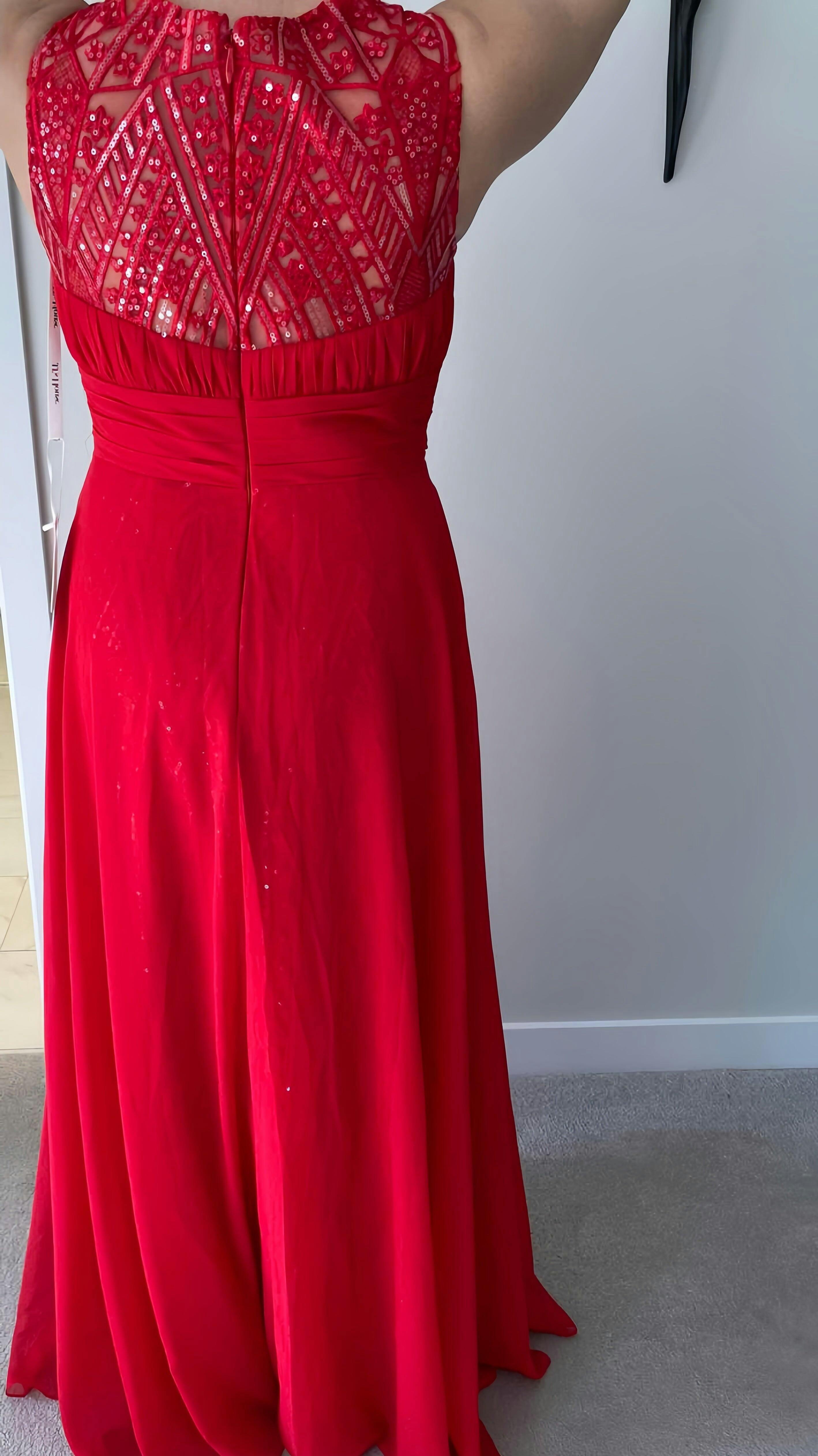 • The model is 5'7" (170cm), 114 lbs with measurements: (Bust 83cm, Waist 65cm, Hips 91cm, Hollow to hem 148cm). She is wearing a US 2 dress.