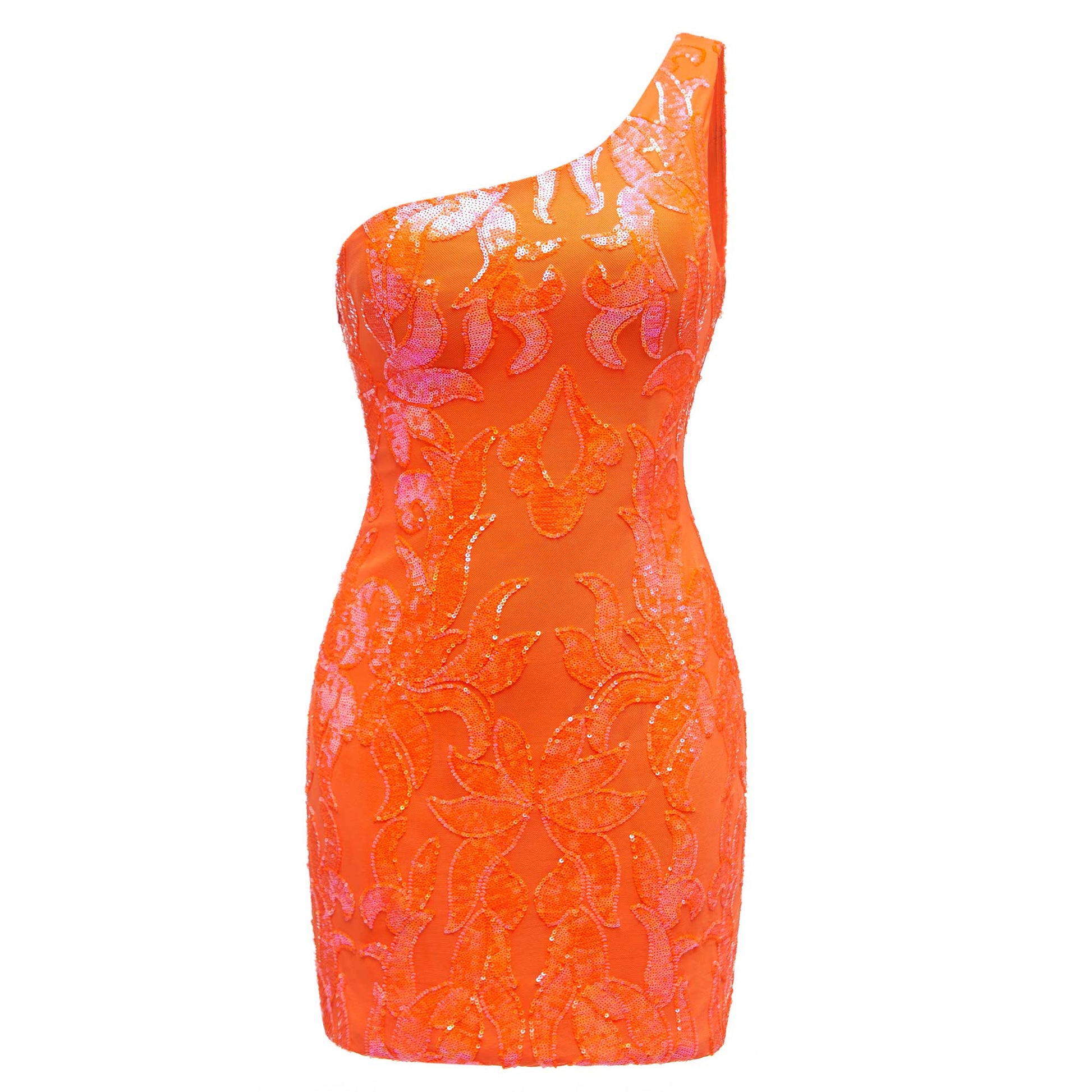 One Shoulder Sleeveless Sequins Mini Homecoming Dresses