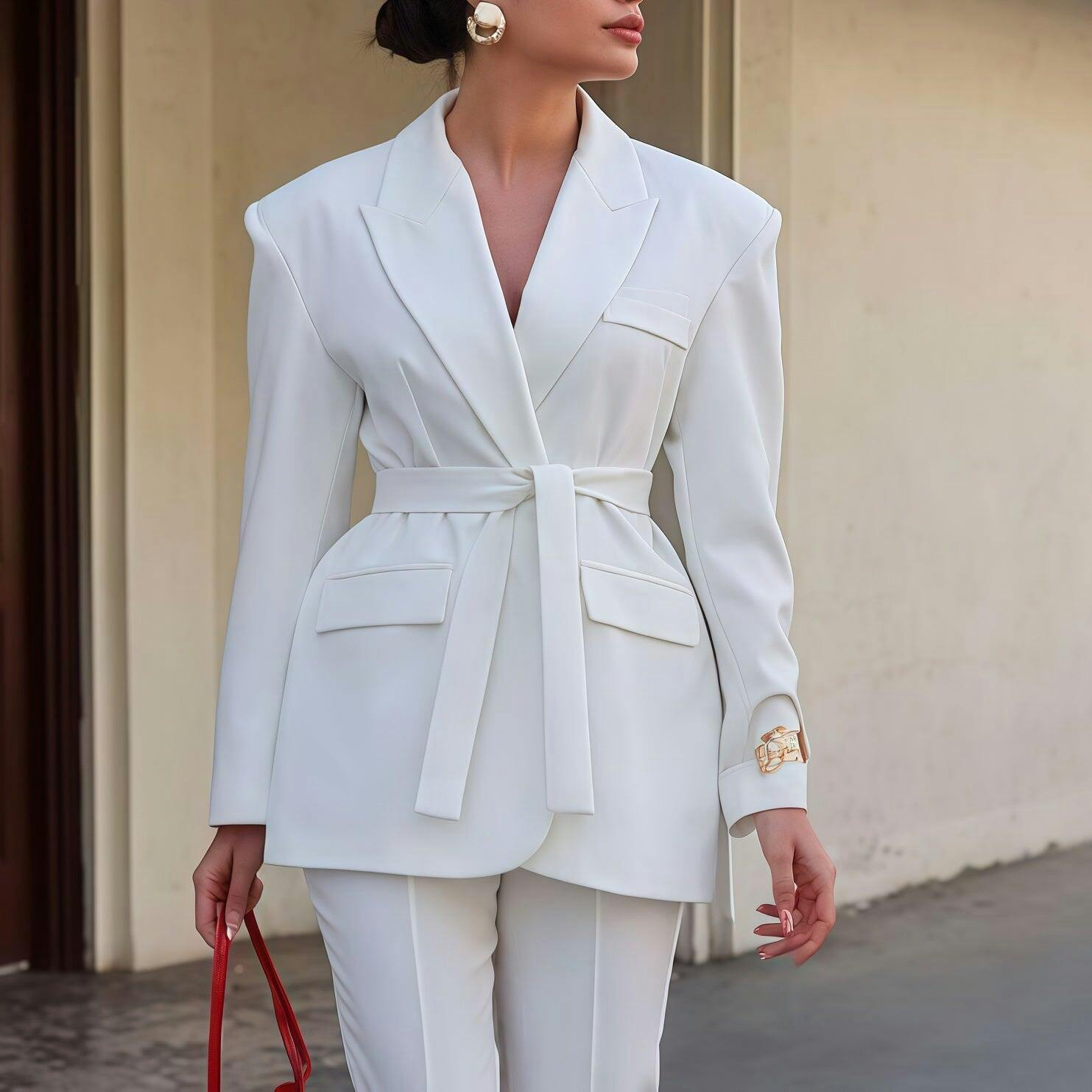 Women's Suits 2 Pieces Wide-Leg Shawl Lapel Suits with Belt for Urban Women